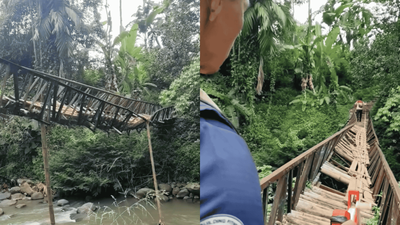 Jembatan yang sempat viral di media sosial itu terlihat melintir dan hanya ditopang bambu, sehingga memicu kekhawatiran masyarakat yang setiap hari melintas di lokasi tersebut.