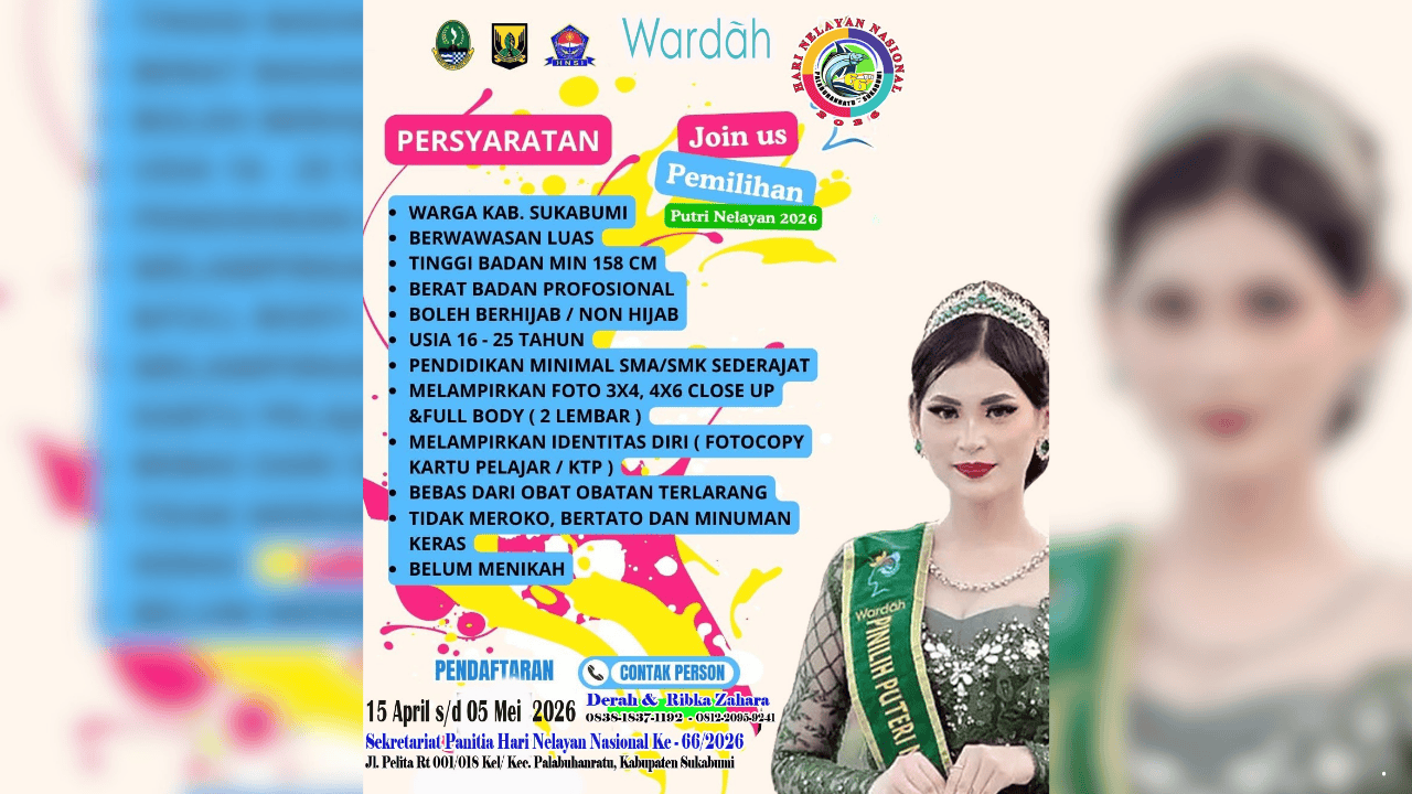 JUBIRTVNEWS.COM – Kabar menggembirakan datang bagi generasi muda, khususnya perempuan di wilayah pesisir Kabupaten Sukabumi. Dalam rangka memeriahkan peringatan Hari Nelayan Nasional ke-66, pemerintah daerah kembali membuka ajang bergengsi Pemilihan Puteri Nelayan 2026.