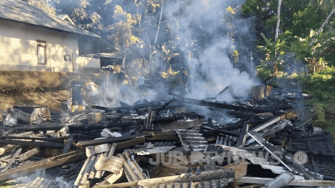 JUBIRTVNEWS.COM – Sebuah rumah warga di Kampung Kebon Mangga RT 03/04, Desa Citanglar, Kecamatan Surade, Kabupaten Sukabumi, hangus dilalap si jago merah pada Selasa (17/3/2026).