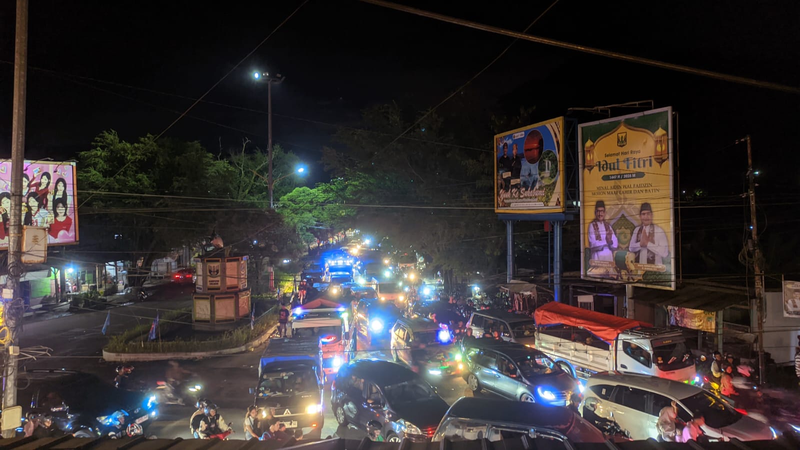 Memasuki malam hari sekitar pukul 21.00 WIB, kondisi lalu lintas mulai berangsur membaik. Meski masih terjadi antrean, laju kendaraan sudah lebih bergerak dibandingkan sore sebelumnya.