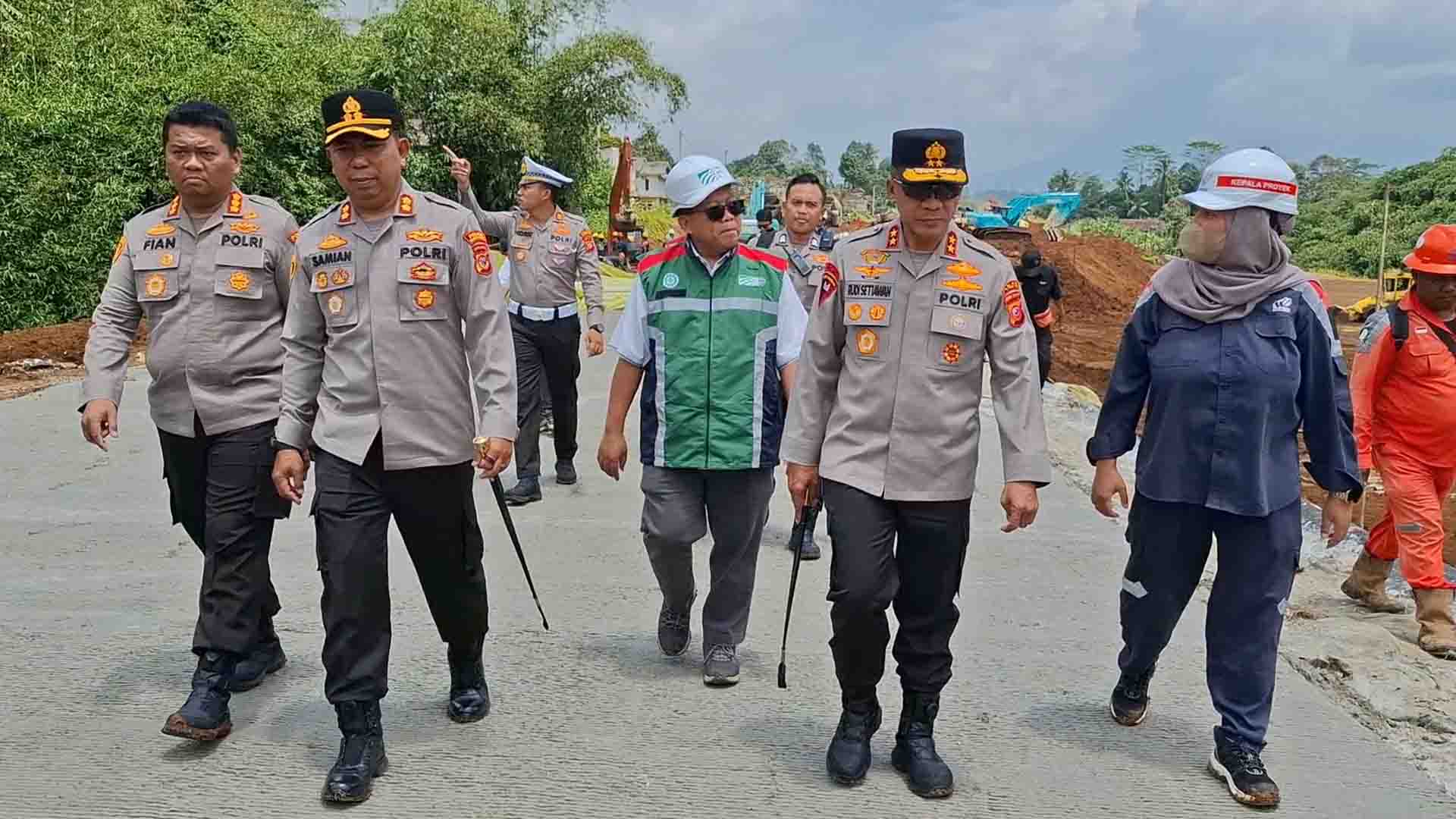 Dalam kunjungan tersebut, Kapolda didampingi oleh jajaran Polda Jabar, Direktur Utama PT Trans Jabar Tol Abdul Hakim, perwakilan PT Waskita, serta Kapolres Sukabumi, AKBP Samian.