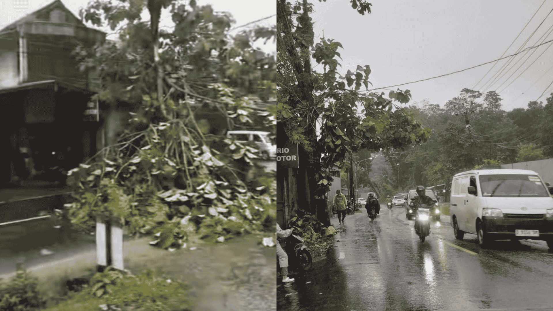 Material pohon yang jatuh itu membuat arus lalu lintas dari kedua arah terhenti total. Pengendara terpaksa menunggu hingga petugas tiba untuk melakukan penanganan.