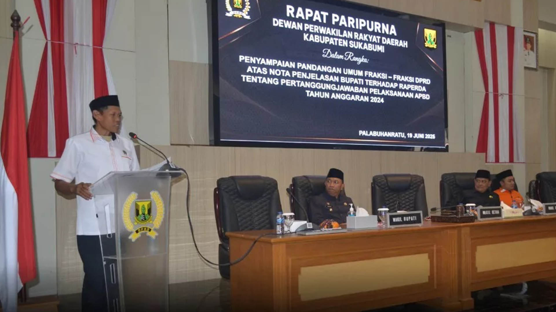 JUBIRTVNEWS.COM – Anggota Fraksi Partai Keadilan Sejahtera (PKS), Uden Abdunnasir, menyampaikan 10 catatan kritis partainya terhadap penjelasan Bupati Sukabumi mengenai penggunaan Anggaran Pendapatan dan Belanja Daerah (APBD) Tahun Anggaran 2024. Pandangan umum ini disampaikan dalam rapat paripurna DPRD Kabupaten Sukabumi pada Rabu (19/6/2025).