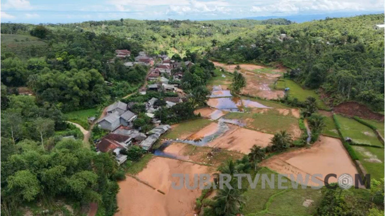 Kabupaten Sukabumi, jubirtvnews.com – Puluhan hektar lahan pertanian milik warga Desa Cihaur, Kecamatan Simpenan, Kabupaten Sukabumi tercemar lumpur dan tidak dapat digarap, menyusul peristiwa banjir yang terjadi pada Minggu lalu.