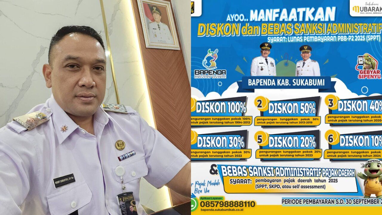 JUBIRTVNEWS.COM – Badan Pendapatan Daerah (Bapenda) Kabupaten Sukabumi kembali membuat gebrakan baru untuk masyarakat Kabupaten Sukabumi. Kali ini, program tersebut berupa pengurangan pokok Pajak Bumi dan Bangunan Perdesaan dan Perkotaan (PBB-P2) serta pembebasan sanksi administratif, dengan syarat warga melunasi PBB-P2 tahun 2025.