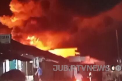 Kabupaten Sukabumi, jubirtvnews.com – Kebakaran hebat melanda gudang sembako Mandiri Jaya di kawasan Pasar Surade, Kabupaten Sukabumi, pada Rabu dini hari sekitar pukul 01.00 WIB. Kobaran api yang ber...